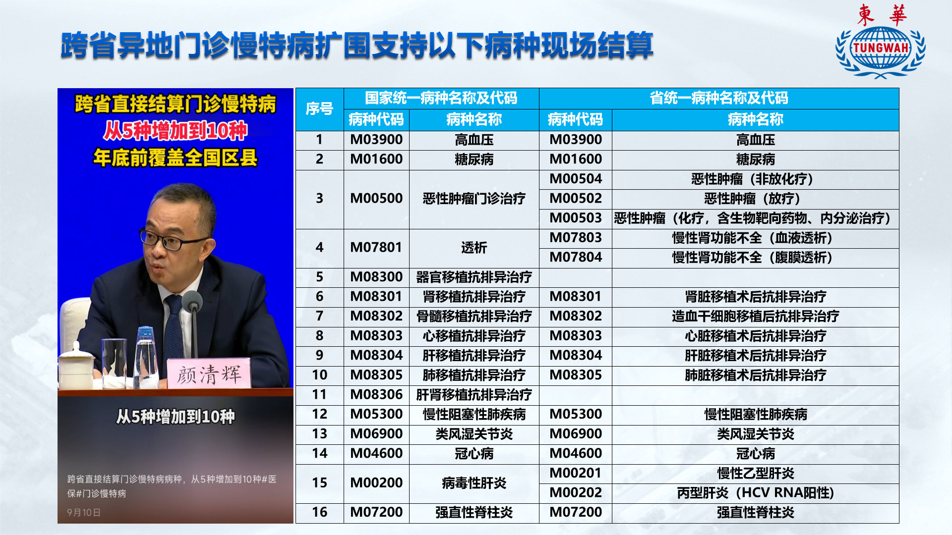 跨省异地门诊慢特病扩围支持以下病种现场结算